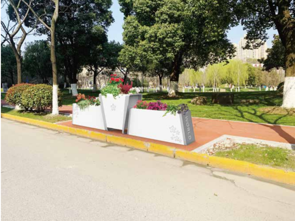您的位置:首页>>铝板花箱>>落英缤纷人行道隔离美化铝板花箱